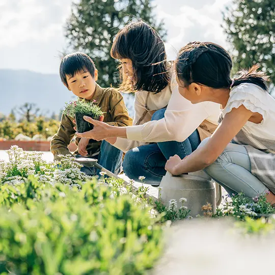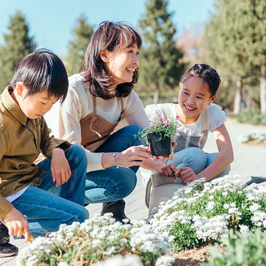 園芸プログラムと連動した各種イベントを開催。公園の花壇のお世話をしたり、地域の方と一緒に野菜を育てたり。いろいろな活動を通してまちを、人を笑顔にしていく。園芸を通じて街全体での活躍の場をご用意しています。